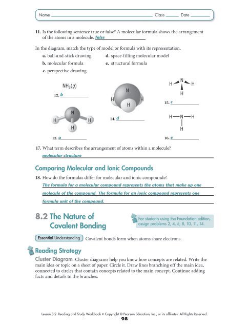 8.1 molecular compounds worksheet answers. Chapter 8 Covalent Bonding. Chapter 8 Covalent Bonding. C molecular formula True-False 12.